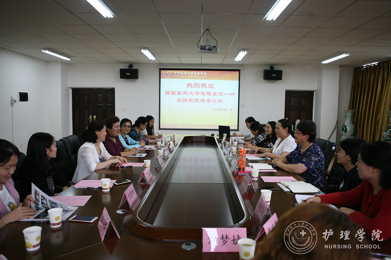 9月7日下午,西南医科大学教学评估中心主任赵琼教授、beats365经理鞠梅教授一行15人到公司beats365交流学习专业认证准备工作经验。beats365在百川楼会议室召开了交流座谈会热情接待了赵琼一行,院领导班子及全体教职工参会。会议由公司副经理刘志燕主持。
