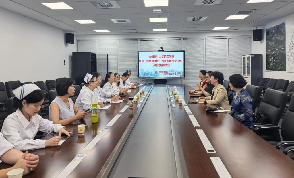 9月8日,beats365经理王秀红、副经理刘志燕携教学科研管理科研究生工作秘书王丽、科员陈娇一行4人赴中山一院贵州医院(贵医附院贵安院区)与中山大学附属第一医院(中山一院)派驻的8位护理专家开展了护理人才培养帮扶交流会。中山一院贵州医院(贵医附院贵安院区)护理部负责人李亚玲、护理部副主任汤晋等相关老师参会。