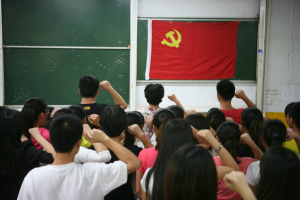在激情嘹亮的《国际歌》过后,全体党员立正,面向党旗举起右手,握拳过肩,在贾书记的带领下,面向党旗庄严宣誓:“我志愿加入中国共产党……随时准备为党和人民牺牲一切,永不叛党。” 每个新党员都激动而又坚定地立下了自己一生无悔的誓言。