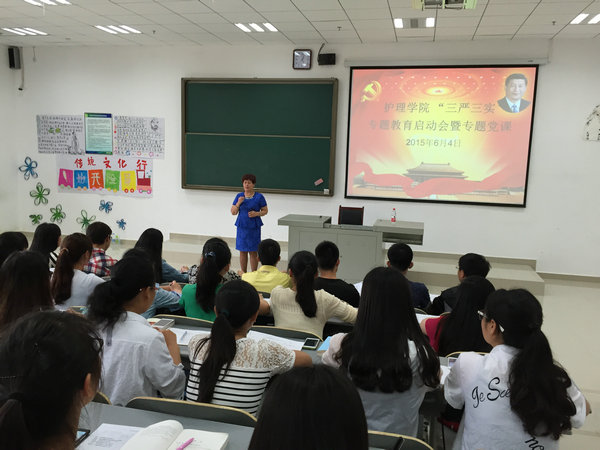 随后贾秀英书记又以“坚定理想信念、践行‘三严三实’”为题上了一堂生动而又深刻的专题教育党课。贾秀英书记从“三严三实”的提出时间和过程入手,着重论述了“三严三实”的精神要义和实质内涵;强调了修身律己、实在做事、老实为人的深刻内涵及重要意义,深入阐释了“三严三实”要求做人做事与权力责任之间的关系。并号召全院师生党员要学深悟透此次专题教育活动精神,进一步统一思想、以“三严三实”的标准严格要求自身,贯彻落实到各项工作、学习中,特别是明年的护理专业认证工作,要把专业认证当作公司发展的良好机遇,齐心协力将beats365规划好、发展好。践行“诚于己,忠于群,敬往思来”的校训,做无愧于“贵医人”称号的贵医人。为实现公司“建设成为具有明显特色、西部一流、在全国有一定影响的高水平医科大学”的目标作出应有的贡献。