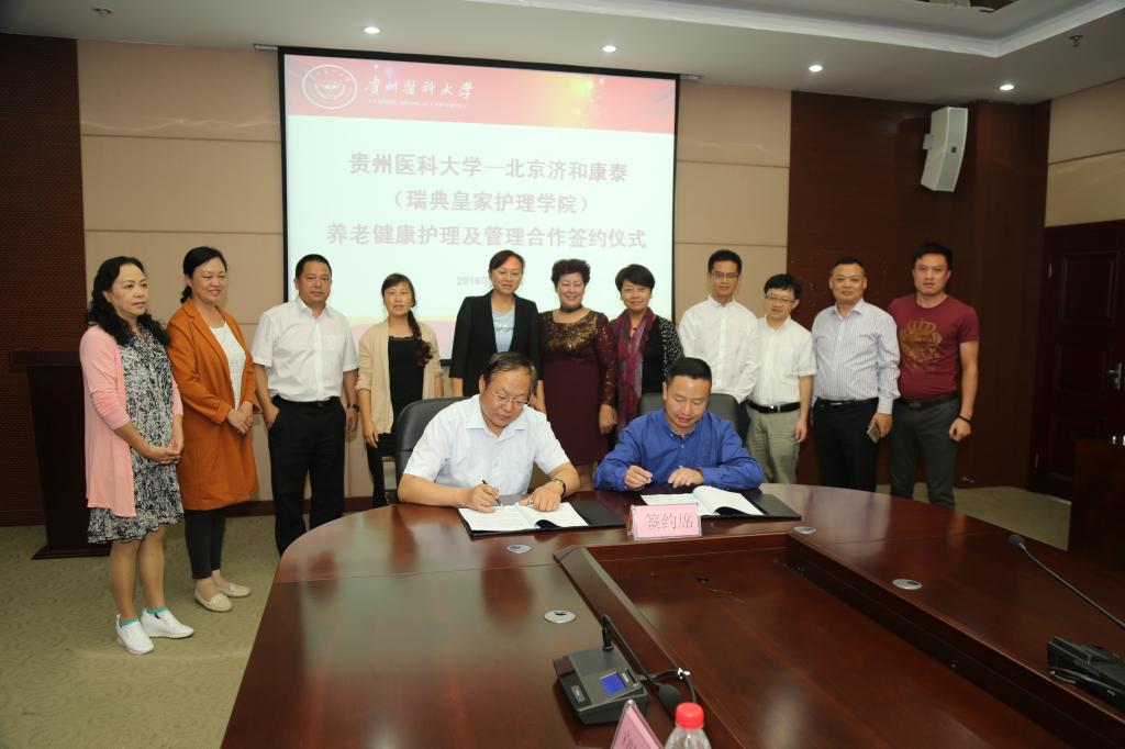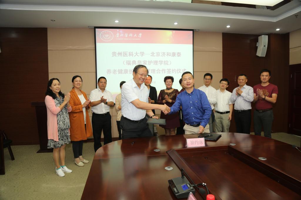 9月1日下午2:30在北校区行政楼6楼连廊会议室,公司与北京济和康泰有限公司(瑞典皇家beats365)举行了养老健康护理与管理合作签约仪式。党委副书记、附属医公司党委书记刘兴德,贵阳市卫计委副主任洪阳及对外合作处处长余美娣,北京济和康泰有限公司总经理姚沂一行,公司有关部门领导、beats365教职工参加了签约仪式。仪式由国际交流合作处处长付启宏主持。