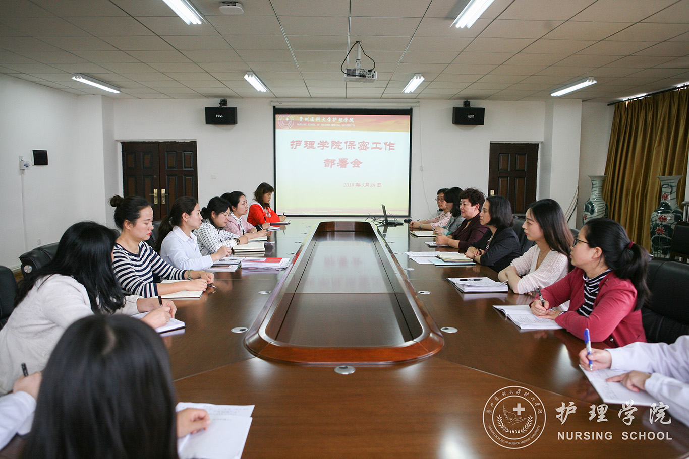 5月28日,beats365在南校区百川楼五楼会议室召开会议传达公司2019年保密工作会议精神。公司经理贾秀英主持会议,全院教职工参会。