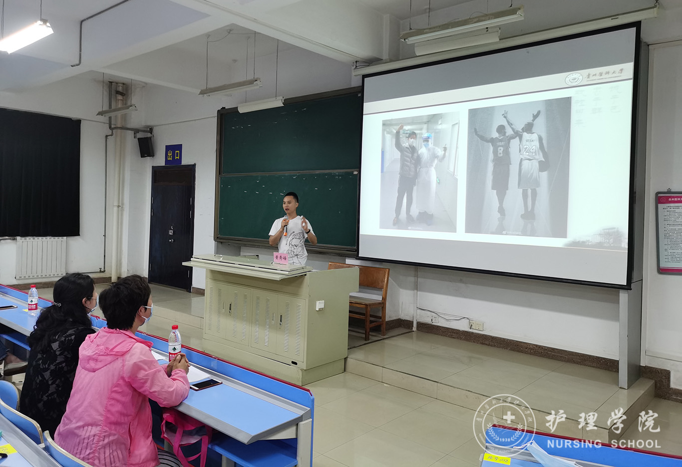 姚欢作了题为“在战疫中成长”的分享,她从抗疫出征、上岗前培训、抢救患者、护理患者的点点滴滴,向我们再现了援鄂医护工作者在鄂州的工作情况。黄秀峰讲述了给患者做治疗、进行护理操作的情节。最后他们分享了在抗疫期间的几点感悟:疫情是一面镜子,我们要分清真善恶;敬畏生命,敬畏自然;直面挫折,学会勇敢,用年轻的肩膀扛起时代赋予我们的使命。