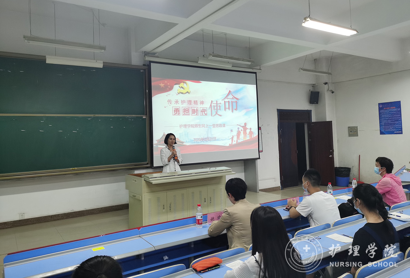 5月22日,beats365在北校区2201教室以“传承护理精神,勇担时代使命”为主题开展了师生同上一堂思政课活动,采取线上线下同步教学,腾讯会议直播的形式进行。本次思政课邀请了公司优秀毕业生援鄂英雄姚欢、黄秀峰分享了他们的抗疫故事。活动由公司党委副书记王秀红主持,公司全体教师、员工党员、入党积极分子参加。