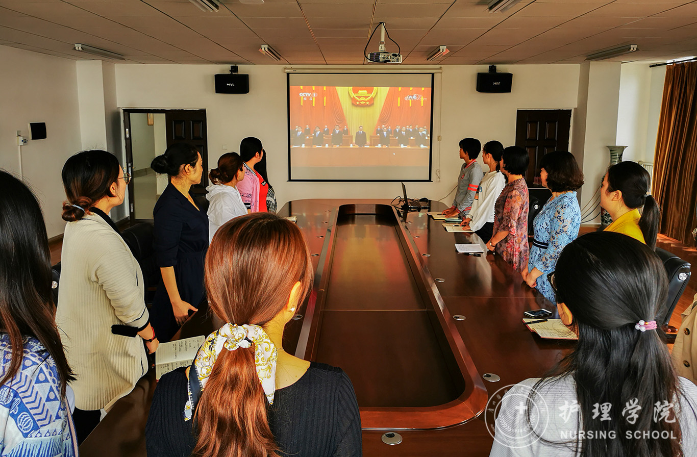 观看过程中,大家认真聆听了习近平总书记关于抗击新冠肺炎疫情重要讲话,向新冠肺炎疫情牺牲烈士和逝世同胞默哀,向抗击疫情中作出突出贡献的医护工作者致敬。当看到耄耋之年的钟南山院士精神抖擞、步伐铿锵的第一个走上领奖台,会议室里响起了教职工们热烈掌声;当将中西医结合治疗新冠的张伯礼院士、身患渐冻症却仍坚守一线的张定宇经理、攻克研制重组新冠疫苗难关的陈薇院士等英雄们出现在荧屏上时,大家的思绪又被带回到了几个月前,不少教师热泪盈眶;习近平总书记发表的重要讲话更引发了大家热烈的讨论,激发了强烈的爱国热情和民族自豪感。大家一致表示,本次表彰大会意义非凡,弘扬了在抗击新冠肺炎疫情斗争中作出杰出贡献的功勋模范的忠诚、担当、奉献的崇高品质,充分体现了党和国家坚持人民至上、生命至上的理念,展现了中国精神、中国力量和中国担当。