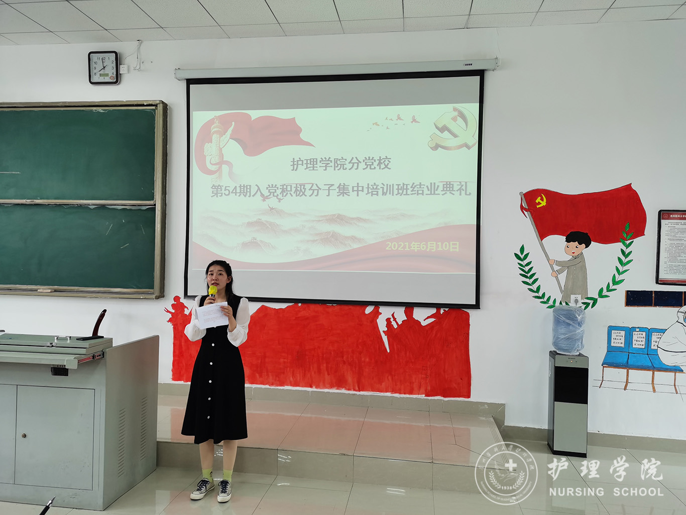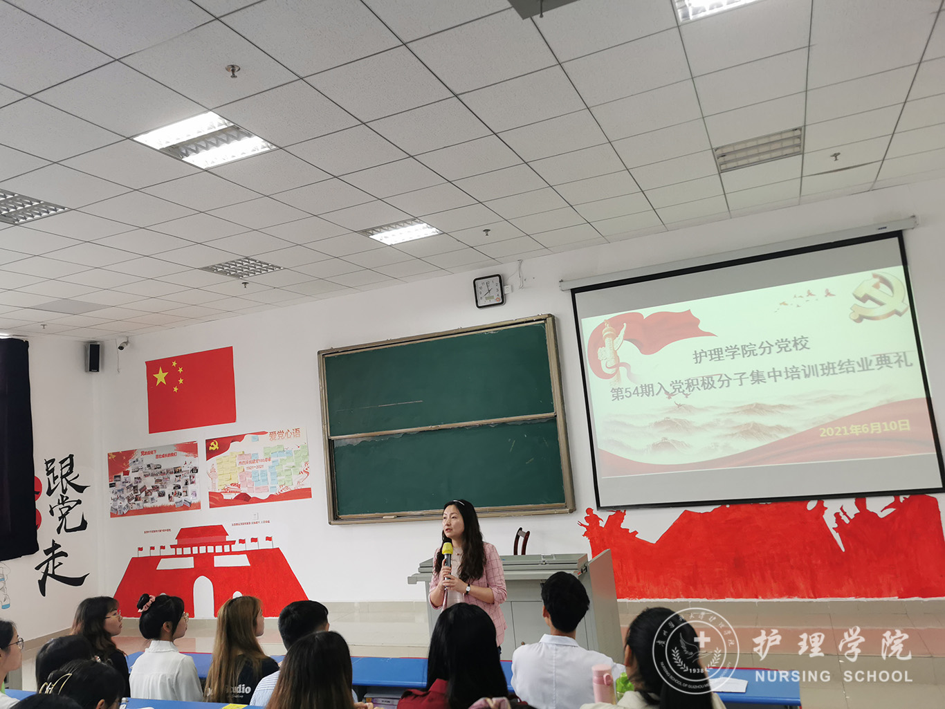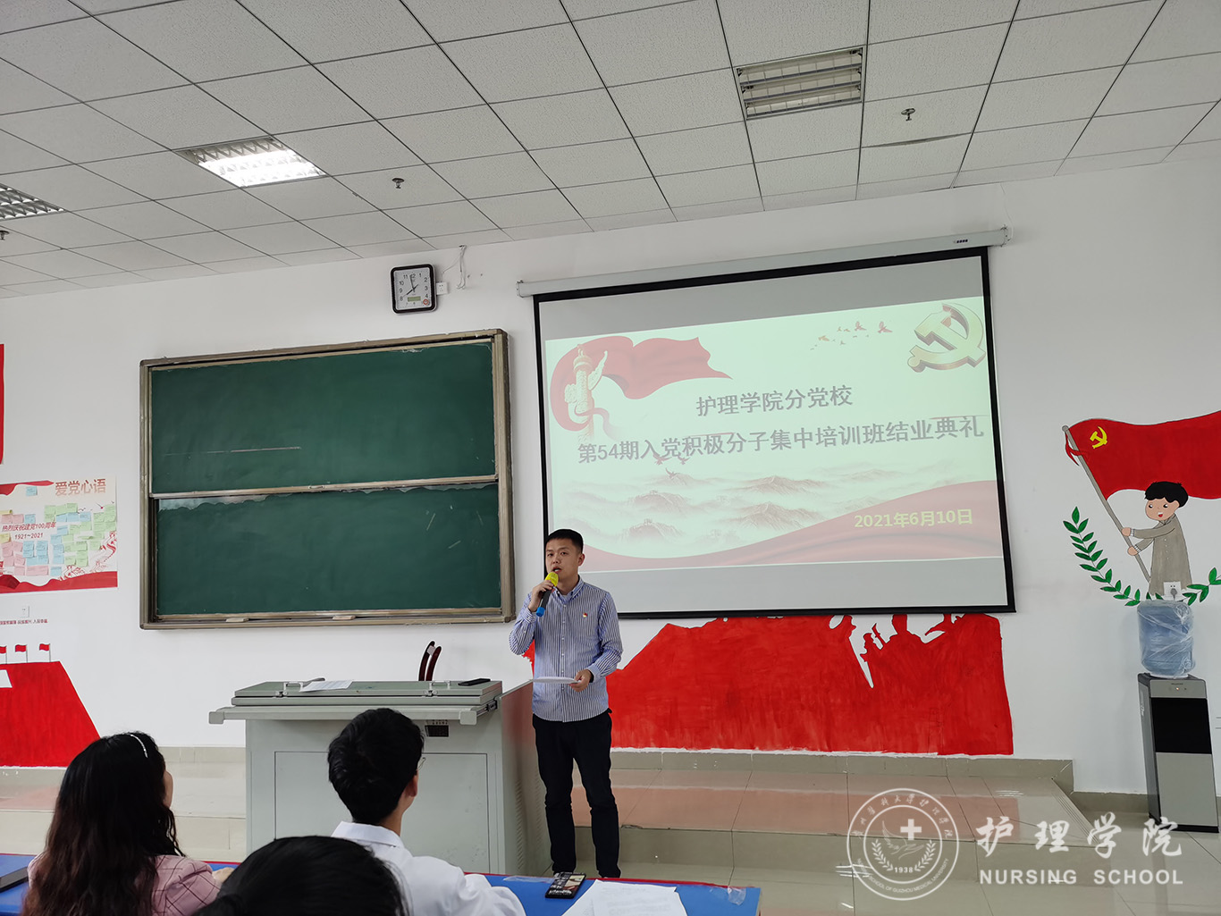 开班典礼在庄严肃穆的《国际歌》后开始,紧接着曾敏宣布本期培训班的16名优秀学员,并对他们表示最诚挚的祝贺。随后,优秀学员代表19级丙班罗茂龙同学分享学习感悟,并承诺要以优秀党员的标准要求自己,以高度自觉性正确认识自己;做到思想入党、行动入党,随时接受党组织的考验。之后何为对本期党校培训班进行总结,并对全体学员提出三点要求和希望:一是要深刻领会党章知识和党校老师授课知识,提高思想认识,进一步端正入党动机。二是尚德明礼,强化责任,注重个人品德的修养。三是做到学以致用,全面发展,提升个人能力,做一个全面发展的现代青年老员工。典礼最后曾敏老师嘱托各位学员要常学常新,做好先锋模范作用。