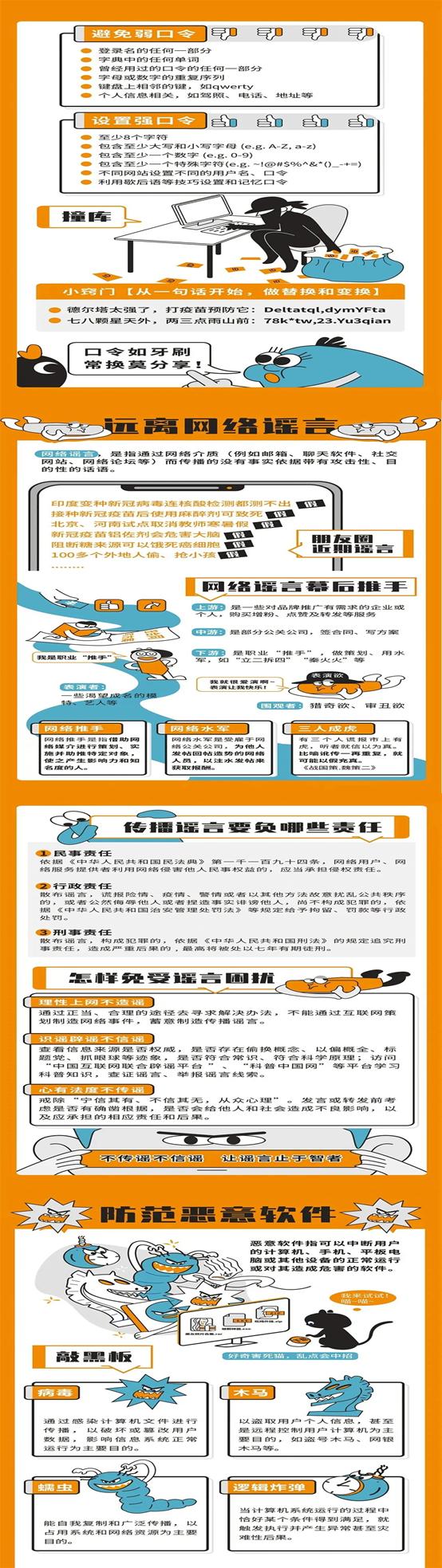 通过对上面宣传手册的了解和学习,我们对电信诈骗、个人信息保护、密码保护、网络谣言、恶意软件以及手机安全风险等有了进一步的认识和了解。网络安全,你我共筑,让我们一起提升网络安全意识、提升网络素养、共享网络文明吧。