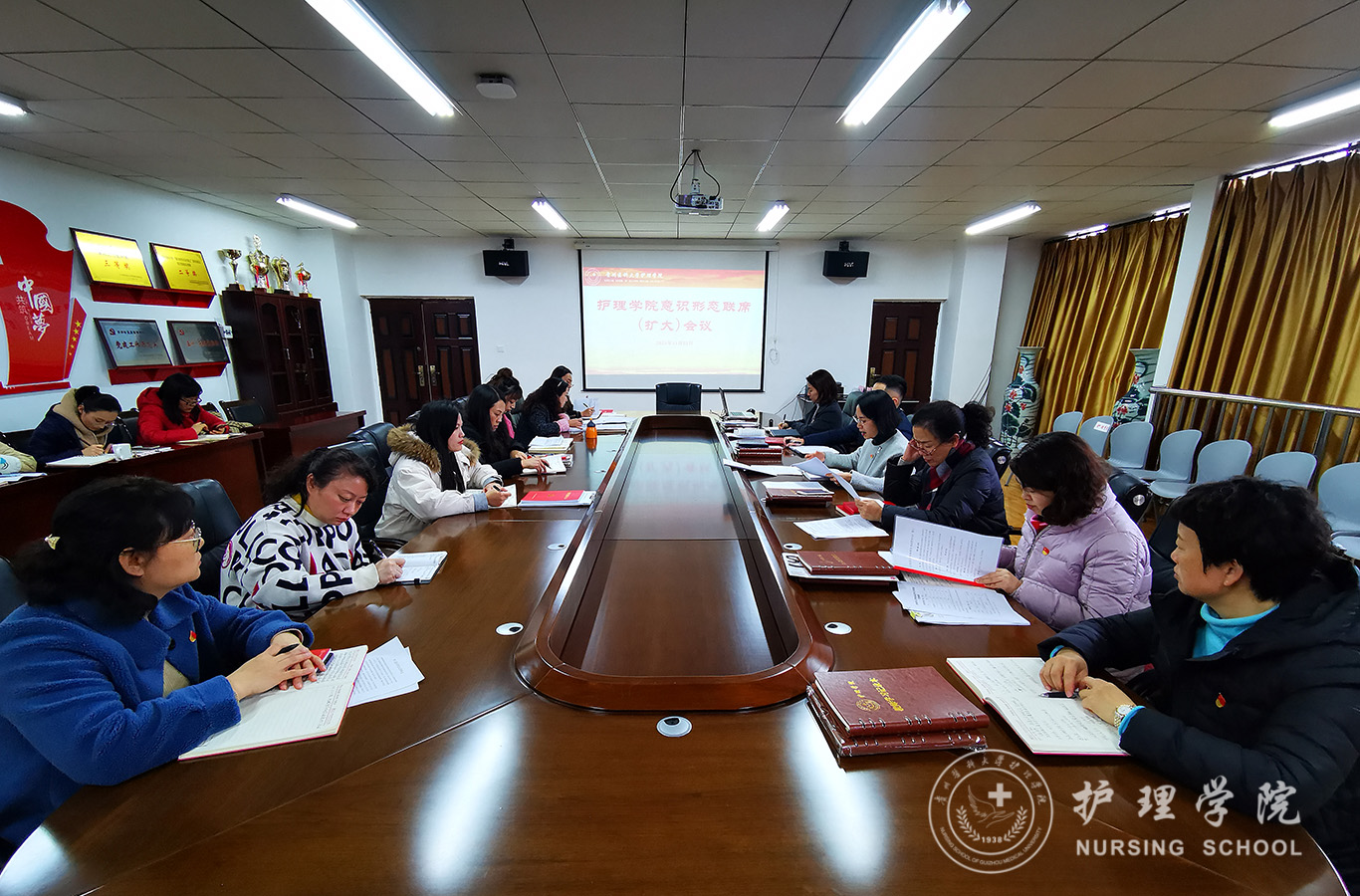 11月22日,beats365在南校区百川楼5楼会议室召开2021年下半年意识形态工作联席(扩大)会议。公司副科级以上干部、教研室主任、各党支部书记、辅导员参会,会议由公司党委书记杨英主持。