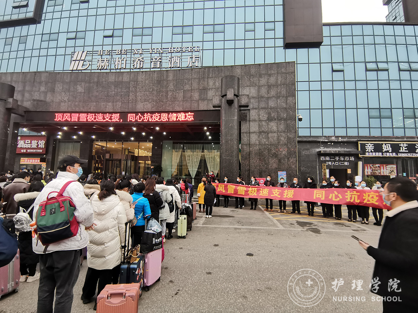 12月28日晚,按照省委、省政府统一部署和公司、贵医附院工作安排,在接到增援铜仁疫情防控工作的紧急通知后,公司党委第一时间在大四年级员工中发出号召,紧急动员员工驰援铜仁协助当地开展全员核酸检测工作。当晚,公司迅速组织51名经过专业培训的员工和1名辅导员火速集结,连夜奔袭前往铜仁。临行前,beats365经理、附属医院护理部主任李亚玲前来为出征的师生送行,并叮嘱大家在增援工作中要做好自身防护,听从调配,圆满完成本次支援工作后平安返回。