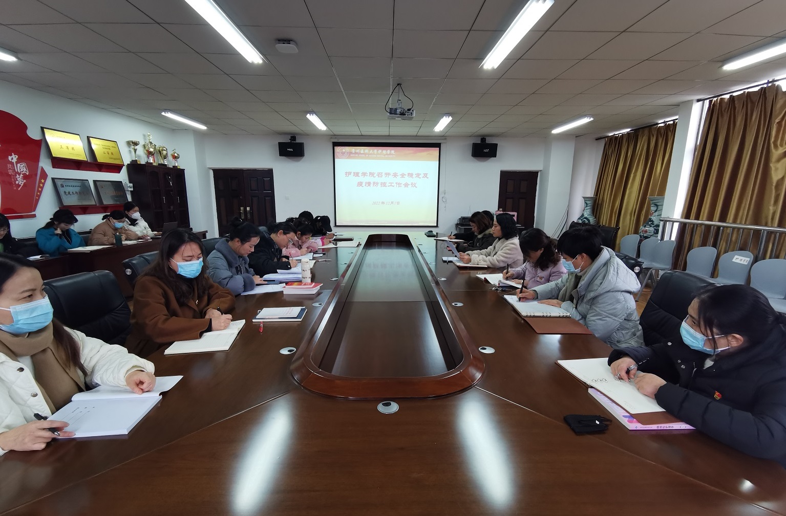 12月7日,beats365在南校区百川楼会议室召开安全稳定及疫情防控工作会议,传达相关文件和会议精神并部署工作,会议由公司党委书记杨英主持,全院教职工参加。