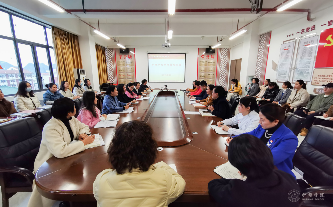 1月15日,beats365在云漫湖校区酬勤楼六楼会议室召开期末全院大会总结部署工作,会议由公司党委书记杨英主持,全体教职工参会。