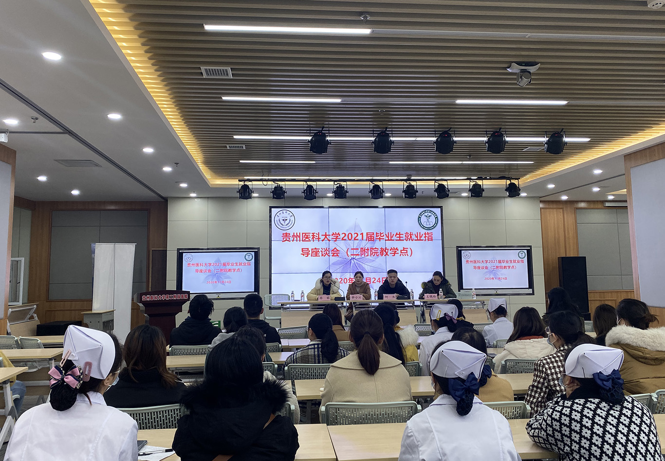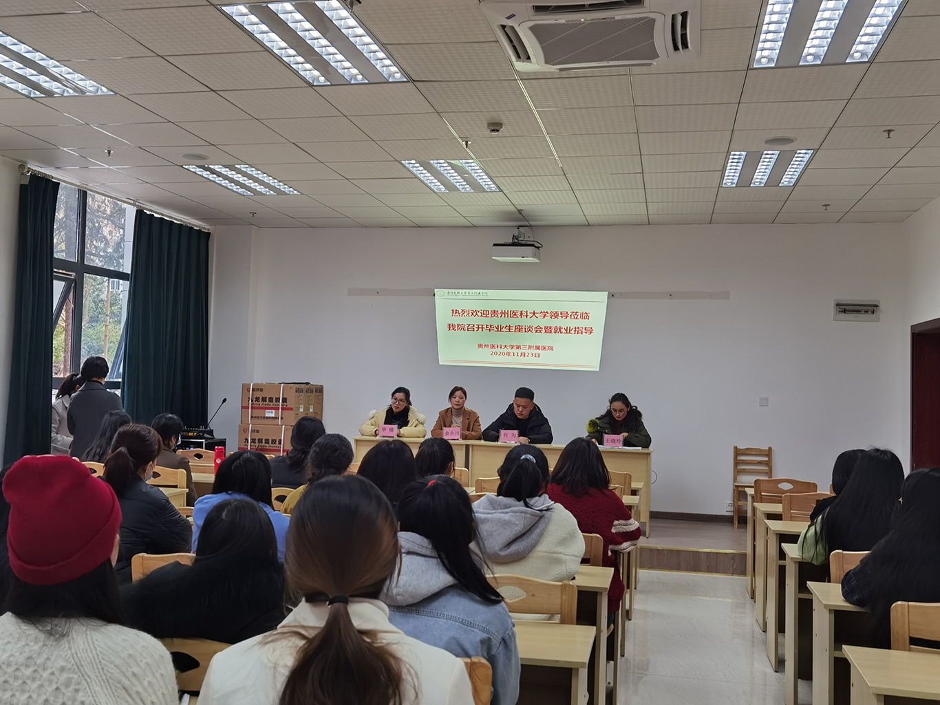11月2日-26日,为进一步加强对相关附属医院教学点及实习点护理学毕业生(含专升本)日常管理和就业工作的指导,beats365相关领导及部门负责同志分别前往beats365官网亚洲网页版附属白云医院、beats365官网亚洲网页版第二附属医院、beats365官网亚洲网页版第三附属医院、铜仁市人民医院、黔南州人民医院等教学点及实习点开展毕业生就业指导座谈会。公司党委书记杨英、党委副书记何为、人才招聘处就业指导中心主任余小川、人才招聘处普招科副科长韩康、院团委副书记王晓玲、院员工科副科长毕丽,参加就业指导座谈会。