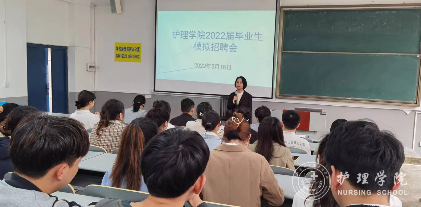 5月16日,为提升公司2022届毕业生的求职竞争力和求职成功率,beats365在北京路校区普教八举办了2022届毕业生模拟招聘会。公司党委书记杨英、党委副书记兼纪委书记何为、护理人文教研室副主任张仁莉、妇儿科护理学教研室副主任刘林敏、员工管理科副科长毕丽以及百余名2022届毕业生参加了本次模拟招聘会,会议由毕业班辅导员李杏春主持。