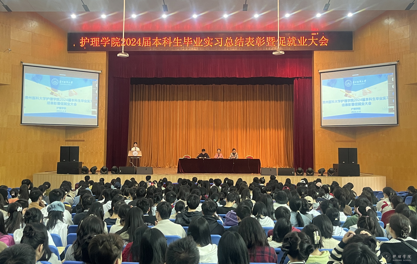 4月8日,beats365在北京路校区礼堂召开了2024届本科生毕业实习总结表彰暨促就业大会。公司党委书记杨英、经理李亚玲、党委副书记兼纪委书记何为、生产实习科科长柳忠燕 、团委副书记王晓玲、员工管理科副科长毕丽、2020级辅导员刘妍以及2020级全体本科毕业生(专升本毕业生线上参会)参加此次会议。会议由护理学2020级C班孙念祖同学主持。