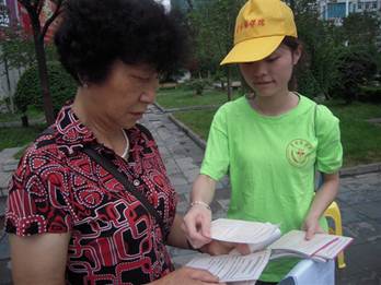 同学正在为当地居民测量血压 发放常见宣传单