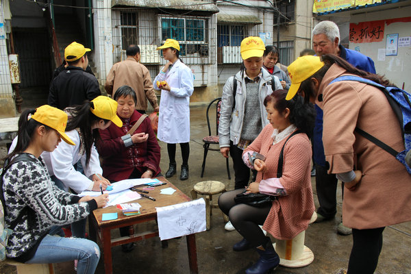 本次活动的主要内容分为四项:第一项,测量血压;第二项,宣传春季养生知识;第三项,鼓励居民们互留联系方式;第四项,送小礼品。在活动的过程中每个成员都积极参与,团结一致,同学们还和居民们聊天、拉家常等。尽管天空下起了大雨,大家也没有退缩,信念没有因为大雨的到来而放弃,热情没有因为大雨而减退。同学们更感欣慰的是人们的一声声谢谢,顿时感觉特满足。同时,整个小区也充满了温情。