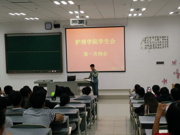 作为员工会招新后的首次例会,副主席胡庆文先对新成员的加入表示欢迎,其次介绍了本次会议的5项内容。首先是由护理简报的王旭芳同学带领大家进行政治理论学习,向大家介绍了“2015年习近平总书记博鳌论坛上的讲话”,并学习了习主席以“迈向命运共同体,开创亚洲新未来”为主题的一系列内容。王旭芳生动形象地把习近平总书记的讲话联系实际生活,告诉同学们要相互尊重,团结合作,促进共同进步,同学们听完后受益匪浅。其次是礼仪部的张进霞同学主讲的以《“9.18”你记住了什么?》为主题的团课学习。她分别介绍了“9.18”事件的发生、经过及历史意义,来启发大家应将国耻铭记于心,引以为鉴,奋发图强。作为一名老员工,更要严于律己,作风清正,政治坚定、不懈奋斗。之后,由副主席胡庆文对上学期员工会开展的活动进行了总结,并分别介绍了几项大型活动以及校园文化活动。此外,他还介绍了本学期即将开展的活动与任务。最后副主席胡庆文代表分团委、主席团对新生寄语,希望员工会全体成员做到学习与工作要兼顾,立定目标,严于律己,勇于实践,敢于创新,全面发展。
