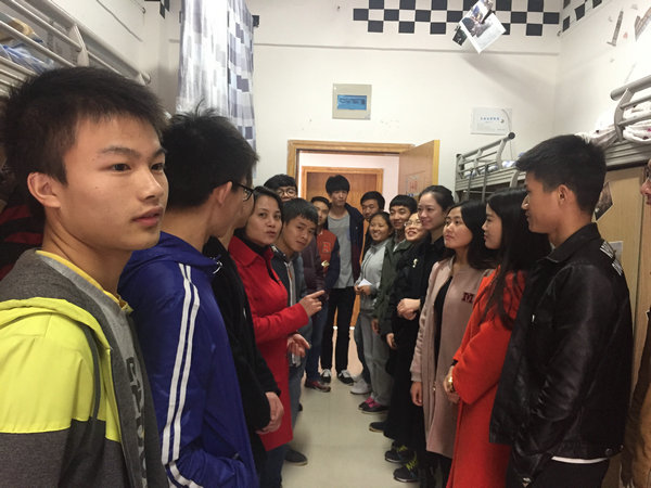 宿舍安全检查的内容主要是员工宿舍用电、宿舍卫生环境状况、寝室安全隐患等情况,重点检查了宿舍卫生、私拉电线、使用大功率电器等事项。检查发现,员工宿舍整体环境整洁,学习气氛浓厚,整体情况良好,但有个别宿舍卫生较差,物品摆放杂乱,存在用电安全隐患,老师们当场进行了指导和隐患排查,要求同学们立即整改,叮嘱同学们注意用电安全,注意财物和人身安全。杨书记还询问了员工的学习生活情况,提醒员工注意开窗通风,保持宿舍空气清新,做好宿舍卫生和自身的安全防范工作。