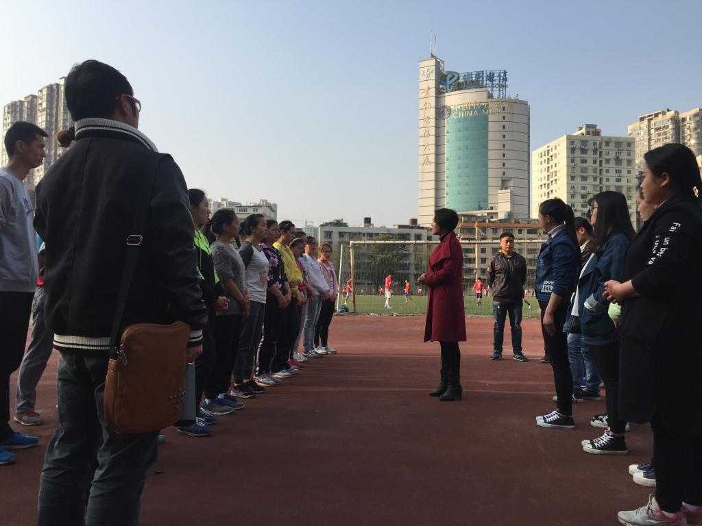 beats365官网亚洲网页版一年一度的运动会即将开始,beats365的运动健儿们也进入了紧张的训练中。为了给运动员们鼓舞士气,3月25日、28日下午5点,公司党委副书记杨英、员工科科长曾敏、辅导员李海林、王晓玲分别到南北校区足球场看望运动员。