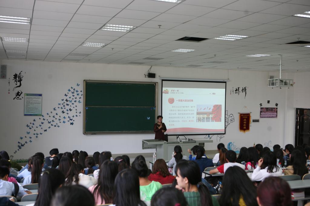 开学典礼结束后,贾秀英书记以《践行“两学一做” 增强党性意识》为题上了一堂精彩的党课。