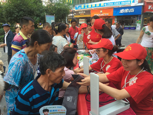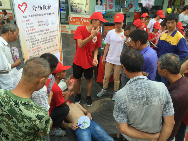 同学们在服务过程中,充分发挥自己的学科优势和专业技能,一方面以医学的角度向群众普及医药知识,避孕套的使用在对于艾滋病的防护以及计生问题上的重要性,避免群众对于药物及避孕套使用的误区;另一方面,进行红十字急救培训并示范常见外伤包扎方法,测量血压评估社区人群健康状况,以所学服务家乡人民,回报社会。