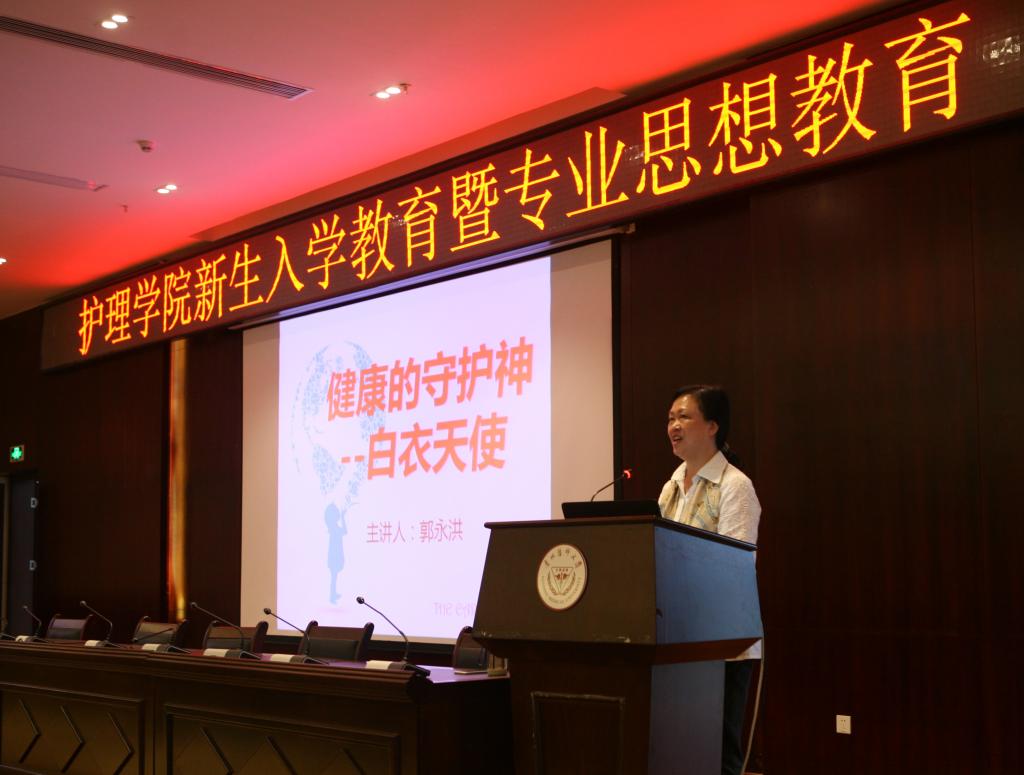 贾秀英老师从老员工如何实现角色转变,如何战胜自我,如何适应老员工活养成自主学习习惯等方面给同学们做了精彩讲授,郭永洪老师从如何给护理专业定位,如何在大学中学好专业知识成为一名合格的护理人才,以及护理的就业前景给同学们进行了全面的讲解。
