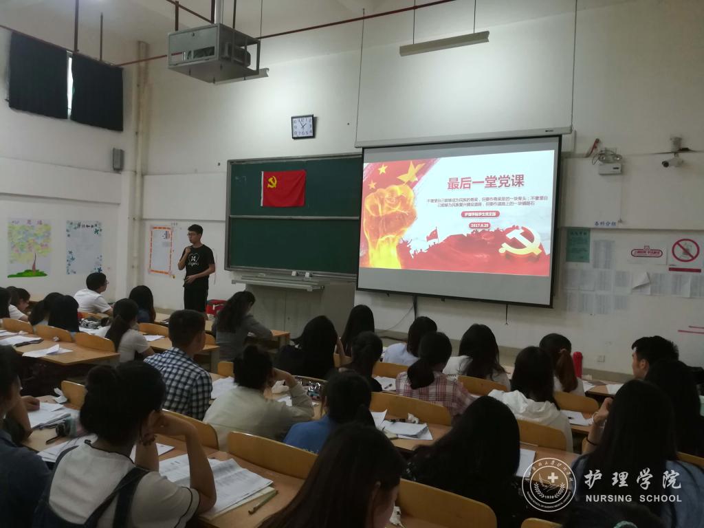 党课上,首先王晓玲对即将毕业的同学们表示衷心的祝贺,恭喜同学们经过四年的努力,顺利毕业。其次,她希望党员同学们要学会感恩:一要感恩母校,感恩母校四年的精心培育之情;二是感恩父母,感恩父母多年的养育之情;三是感恩社会,以最好的心态迎接新的环境,时刻传播正能量。王晓玲还强调,作为一名医员工党员,一定要将耐心、爱心、责任心融入到今后的学习、生活和工作中,充分发挥党员的先锋模范作用。随后,毕业生党员李浩代表发言,他道出了在院领导和老师们的关心下,茁壮地成长,表达了对母校的依依不舍之情。