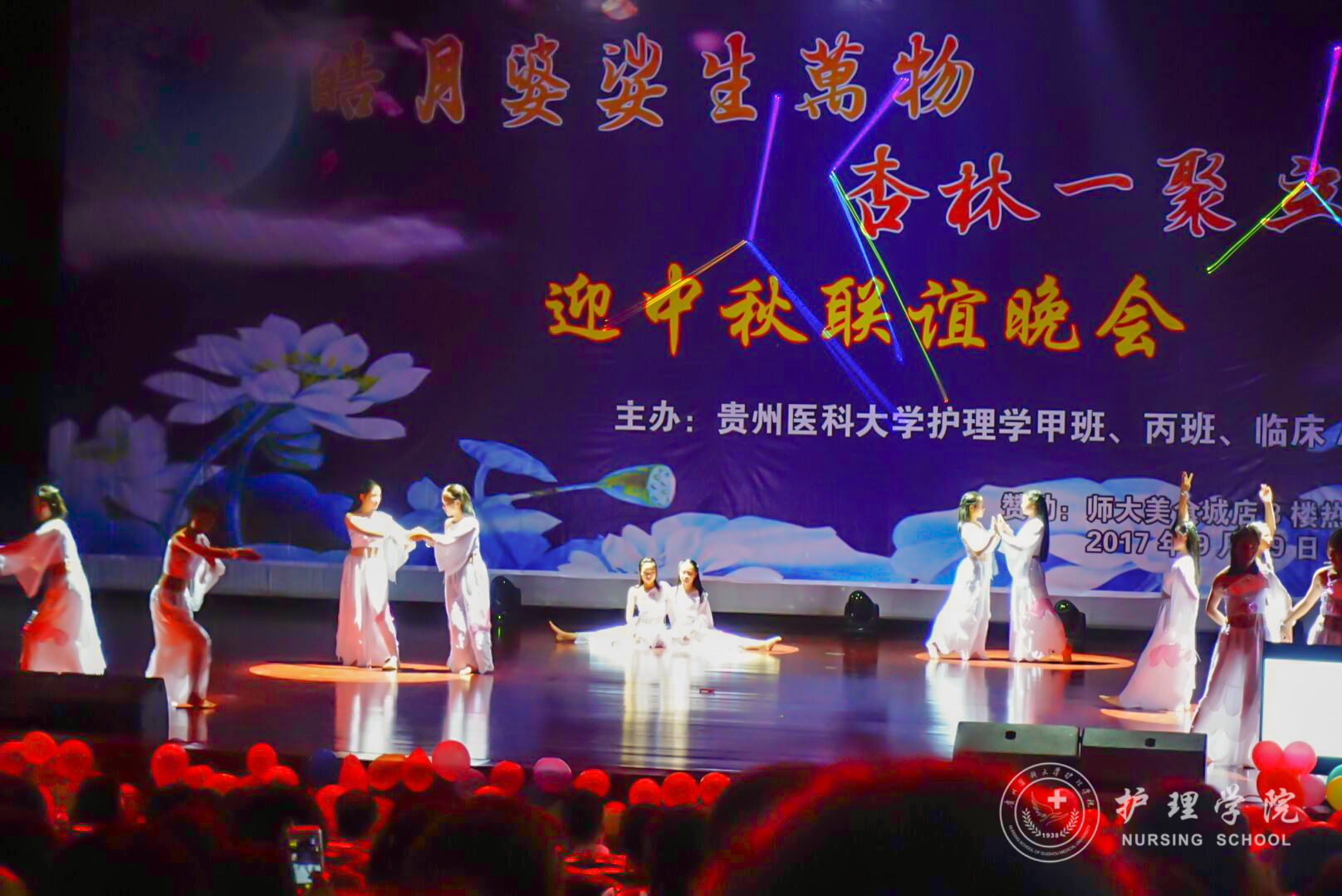 为了增强同学间的友谊,提高集体意识。9月29日晚上,beats3652017级甲班、丙班在花溪校区礼堂与2017级临床A班、C班共同举行了“皓月婆娑生万物,杏林一聚立乾坤”迎中秋联谊晚会。本次晚会邀请了外国语公司何晓涛老师、心理健康中心彭彪老师、基础医公司辅导员苗建峰老师、beats365辅导员王晓玲、毕丽、李颖和马景瑶老师以及老生代表参加。晚会由2017级护理甲班杨一城、崔玉琪、临床A班唐永豪、封雪晴四位同学主持。