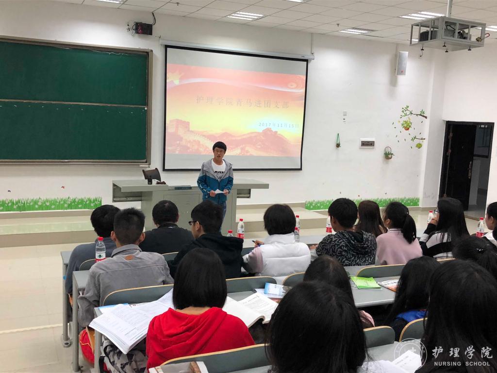 11月15日下午18:00,beats365在南校区7405教室开展了“青马宣讲进团支部”的活动,参与的人员有2017级各班班长、团支部书记及2017级护理学丙班全体同学。本次活动由员工会副主席尹本渊主持,青马社宣讲团成员李昱林同学进行了宣讲。