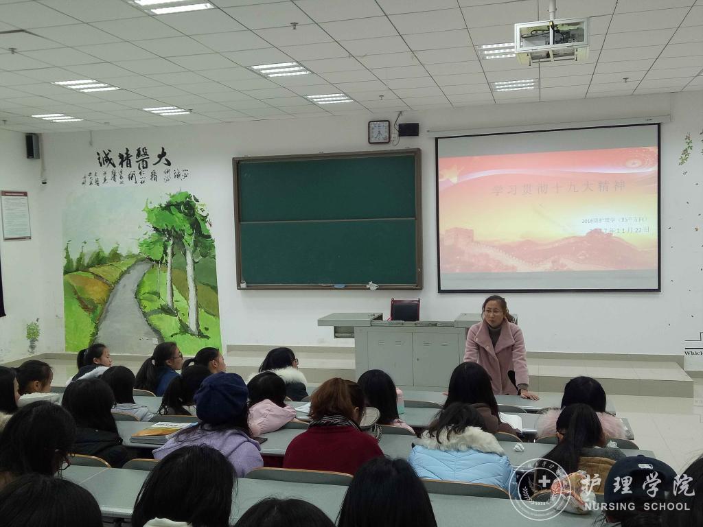 11月22日下午4:30,beats365在南校区4405教室召开了“学习十九大精神 做优秀护理人才”主题班会,班会由班主任徐锟老师主讲,护理学(助产方向)2016级全体同学参加。
