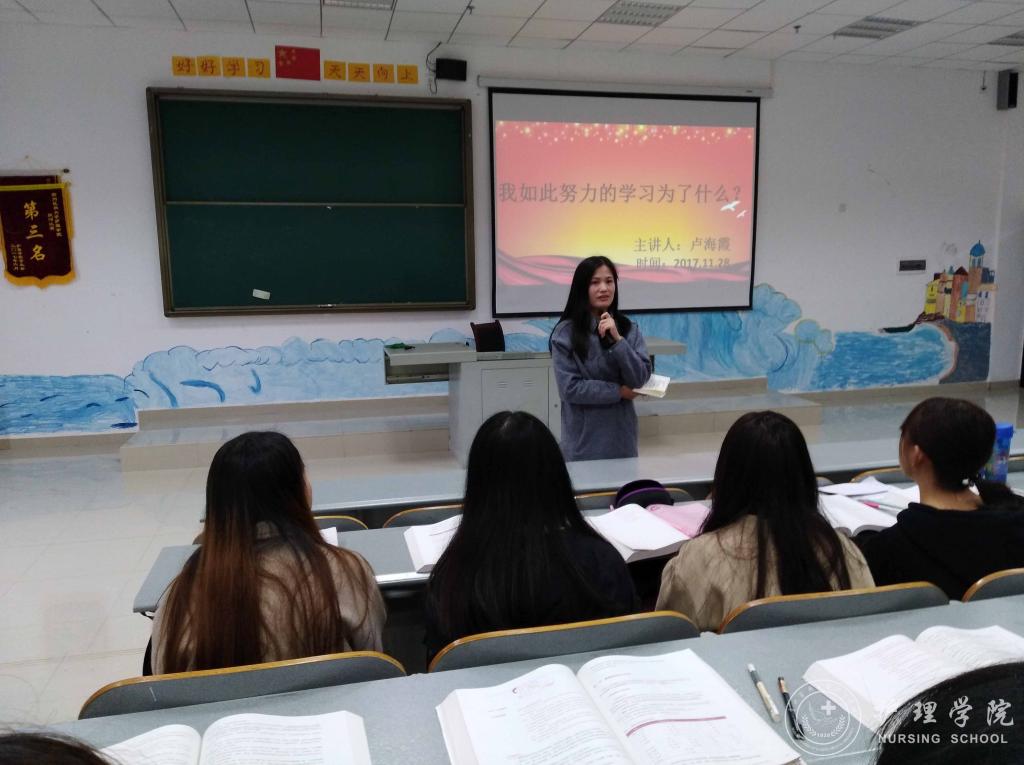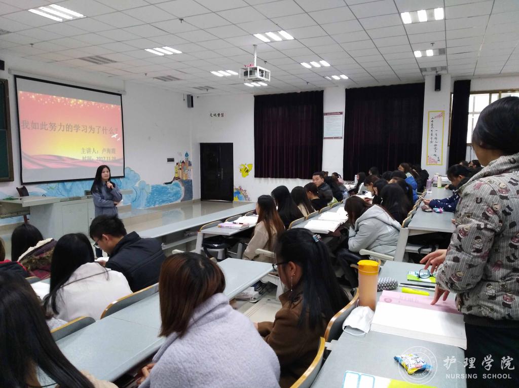 为进一步夯实新时代老员工理想信念基础,指明前进方向,找准人生坐标,beats365于11月28日中午12:00在南校区4404教室开展“牢记使命、明确目标、追逐梦想、拼搏奋进”主题班会活动。班会由班主任卢海霞主讲,2016级护理乙班全体同学参加。