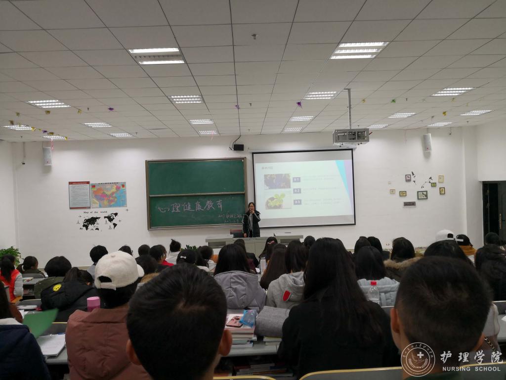 为增强老员工心理健康意识和促进师生交流,beats365于12月7日晚18时在南校区7404教室开展“心理健康教育”主题班会活动。此次班会由辅导员马景瑶主持,班主任王丽和蒋苑同学主讲,2017级护理乙班全体同学参加。