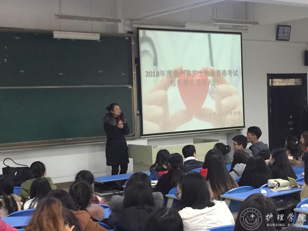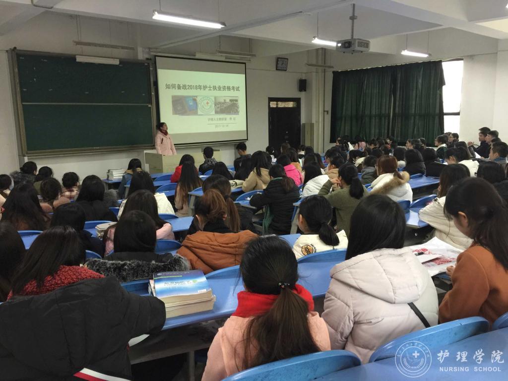 2017年12月14日下午,beats365在北校区2402教室召开了“2018年护士执业资格考试培训会”,本次培训会分为“2018护考题型分析”、“护士执业资格考试报名相关事宜培训”和“实习生恳谈会”三个部分,beats365副经理刘志燕、生产实习科科长柳忠燕、护理学专业教师李红和2014级全体护理实习生参会,会议由员工科科长曾敏主持。