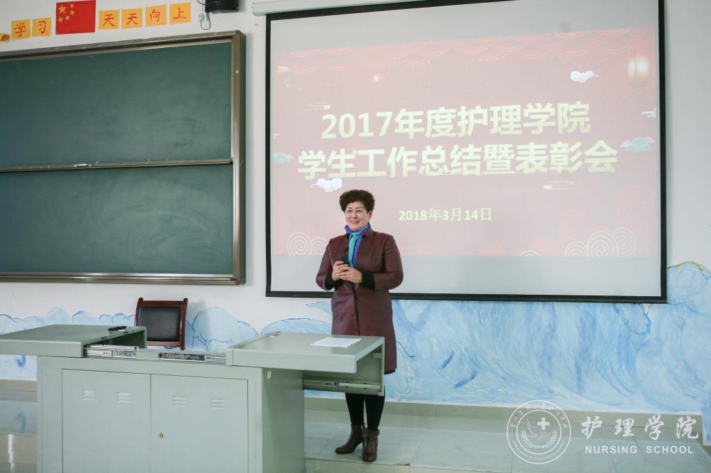 最后,公司党委书记兼经理贾秀英作总结讲话,贾秀英首先代表公司党政领导及全体教师向受到表彰的先进集体和先进个人表示最热烈的祝贺!同时,也向无私奉献、辛勤培育员工的领导、全体教师表示崇高的敬意和衷心的感谢!贾秀英指出,2017年度员工工作可以归纳为“三多”和“两满意”。“三多”即员工工作亮点多、活动多、奖励多,“两满意”是指公司满意、公司满意。同时,贾秀英向同学们提出了三点希望:一是希望同学们不忘初心、牢记使命;二是希望同学们自觉提高创新能力和竞争意识;三是希望同学们做建设和谐校园的模范。贾秀英勉励大家要把实现中国梦的发展目标与个人的努力成才有机结合,践行贵医校训,用自己的故事为母校80华诞谱写壮丽华章!