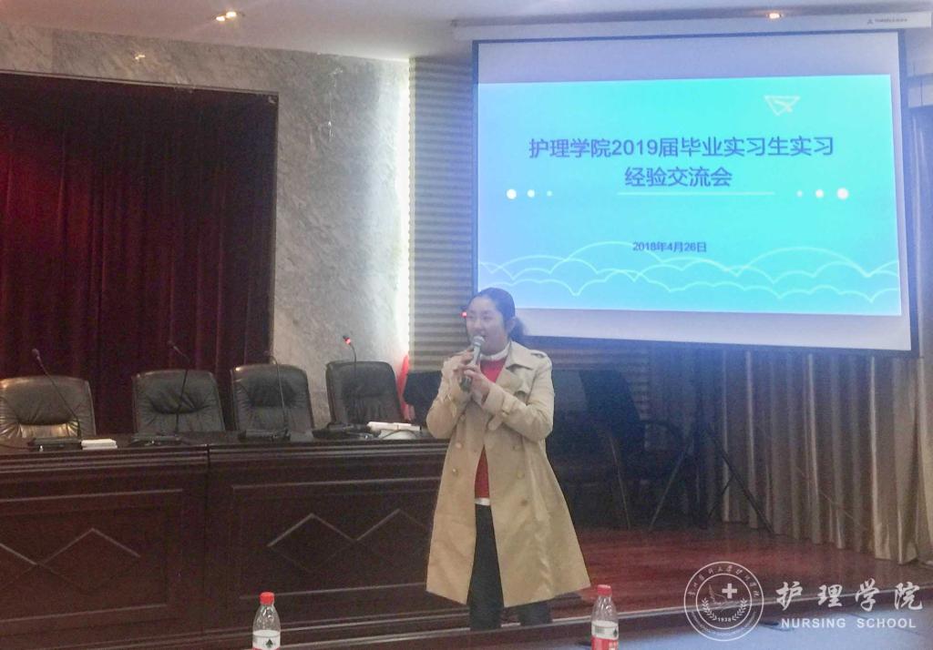 首先,李颖简单的介绍了出席交流会的同学和本次交流会的目的。接着,曾在重庆西南医院、beats365官网亚洲网页版附属医院、贵州省人民医院、贵州省妇幼保健院实习的优秀实习生代表唐昊宇、张敏、林娴、黄莉华、罗琳,结合自身情况分享各个实习医院的环境和要求,帮助大家初步熟悉实习地点情况、尽早进入实习状态。他们用实习期间积累的经验,向师弟师妹们讲解实习中会遇到的基本状况和突发状况及其应对措施,解说勤奋和情商的重要性,以及实习过程中要学会保护自己,并不断提高自身操作技能。让师弟师妹们直观的感受到了临床实习的氛围与激情。最后,员工科科长曾敏为本次交流会做出了总结,她希望同学们都要学好专业基本功,本着对生命负责任的态度对待实习,珍惜实习带来的宝贵实践经历,不断提高自身综合素质,用努力和行动,迎接明天的成功。
