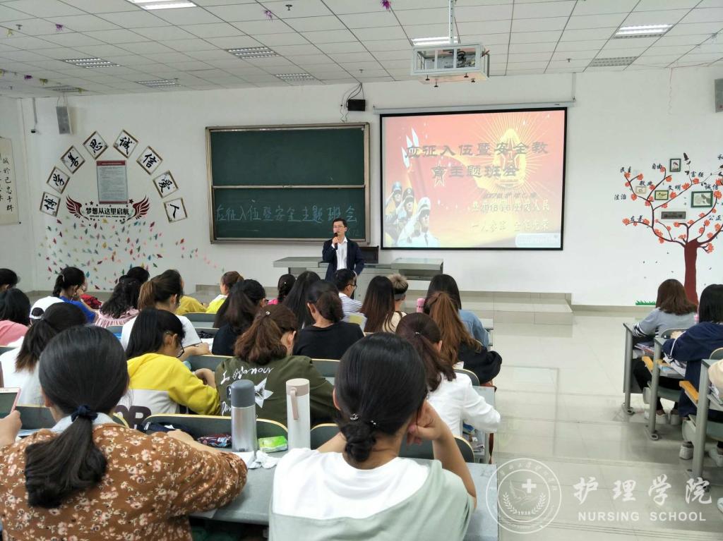 为增强老员工参军报国的意识,鼓励老员工积极应征入伍及维护校园的安全稳定,6月12日下午,beats365在南校区7404、7406教室开展了老员工应征入伍暨安全教育主题班会。此次班会由辅导员马景瑶老师主持,2017级护理学甲班、乙班全体同学参加。