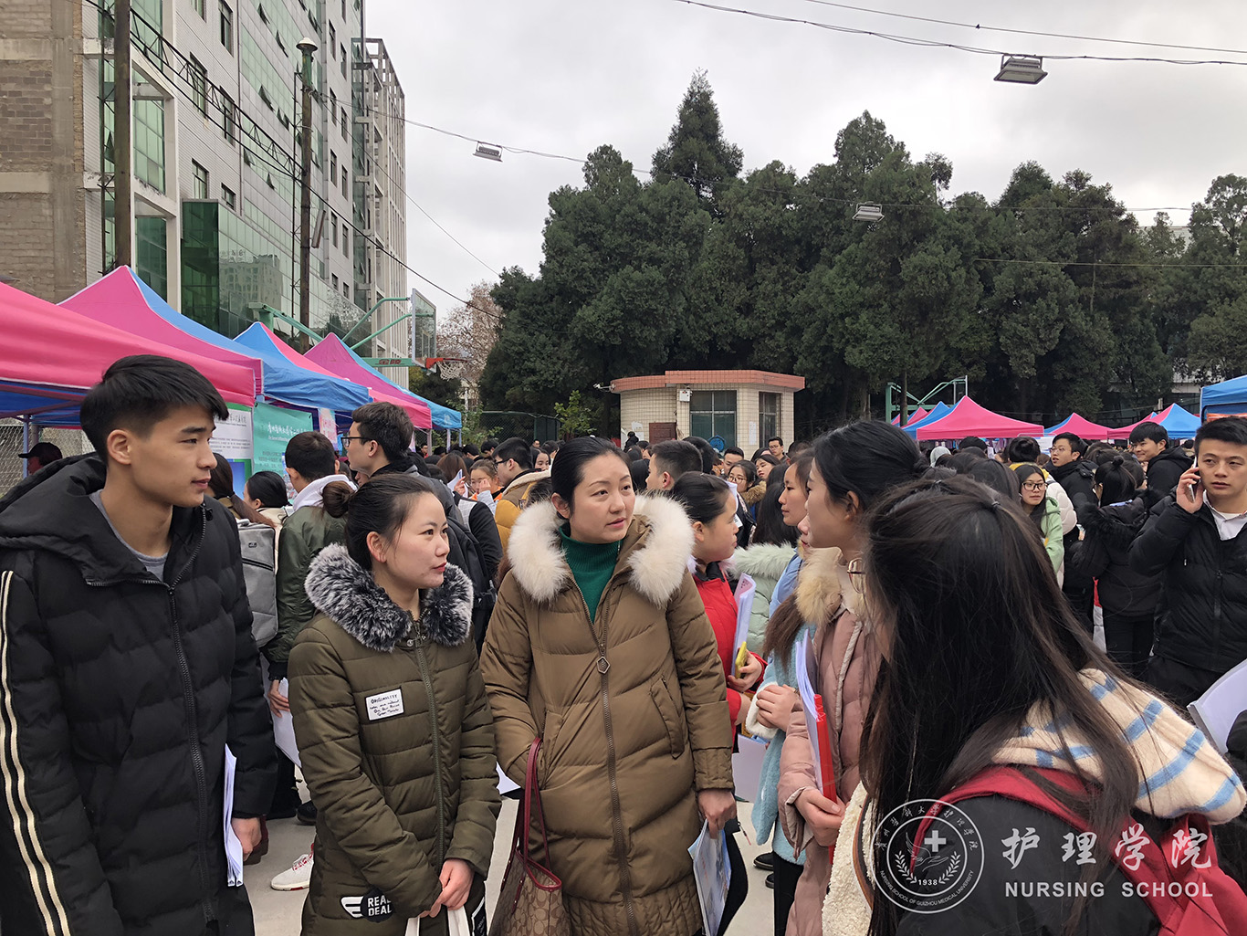 12月7日,冬季大型校园招聘会,吸引了中山大学附属第八医院、深圳市龙岗区妇幼保健院、湖南南华大学附属南华医院、贵州省肿瘤医院、习水县妇幼保健院等用人单位前来招聘。公司详细了解用人单位招聘护理岗位的需求,鼓励毕业生积极把握就业机会,坚持“先就业、后择业”的原则,力争顺利签约。同学们积极递交个人简历并参加面试。本次招聘会进一步为毕业生拓宽了就业渠道,为公司就业工作的稳步开展奠定了基础。