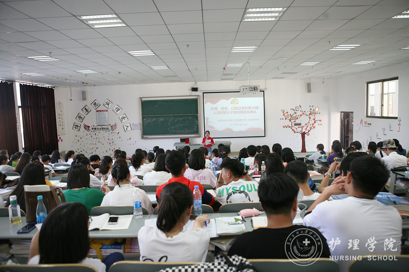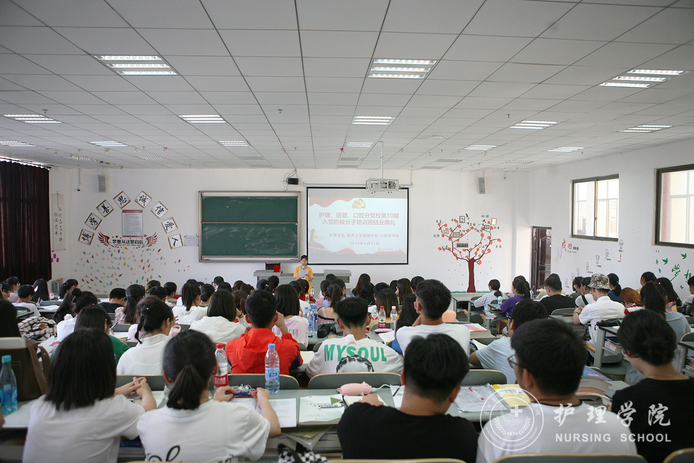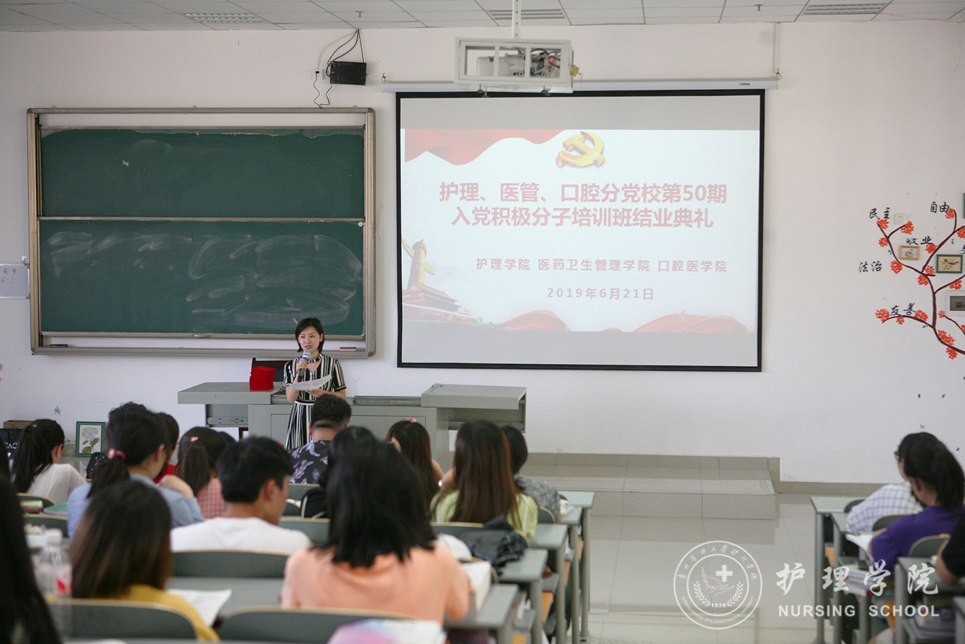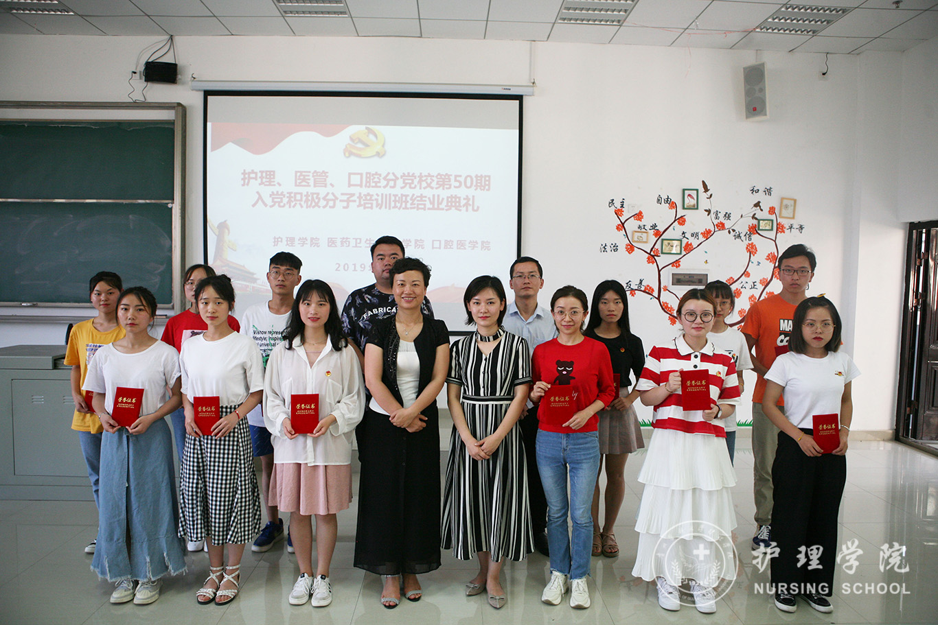 6月21日,护理、医管、口腔分党校第50期入党积极分子培训班结业典礼在南校区7404教室举行。口腔医公司党委副书记钱禾、公司党委副书记王秀红、医药卫生管理公司分团委书记刘安跃及培训班全体学员参加了结业典礼。典礼由本期培训班班主任、公司员工第二党支部书记马景瑶主持。
