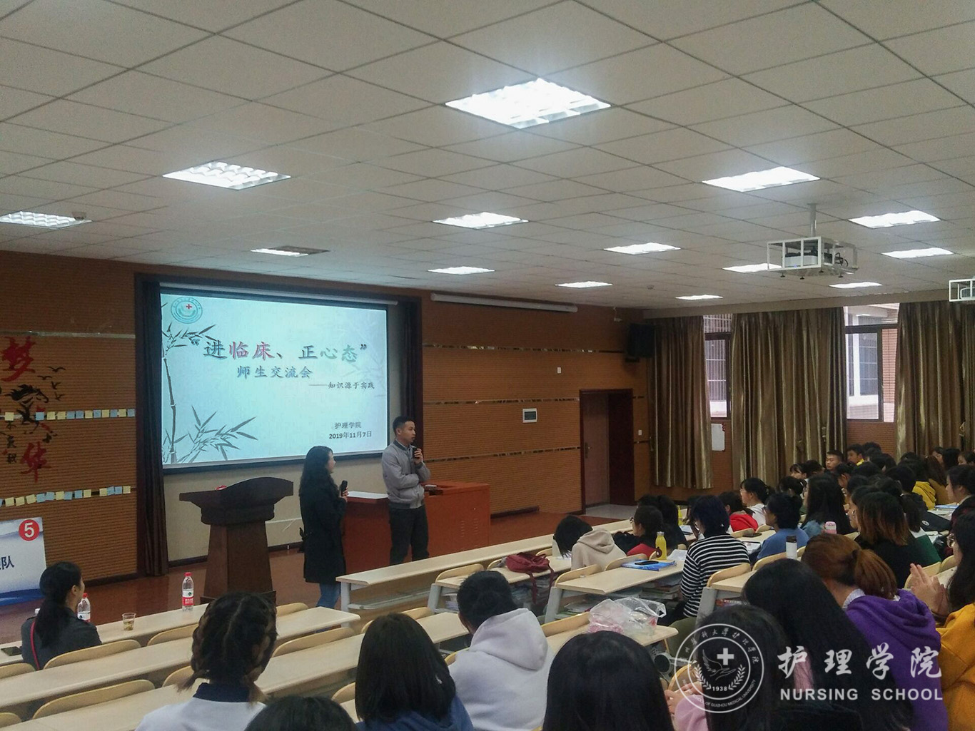 为了加深员工对护理学、助产学专业的认知,增强员工专业认同感,指引员工正确规划学习目标,激励员工奋发学习,11月7日下午beats365在南校区百川楼1101教室举行了“进临床,正心态”师生交流会。
