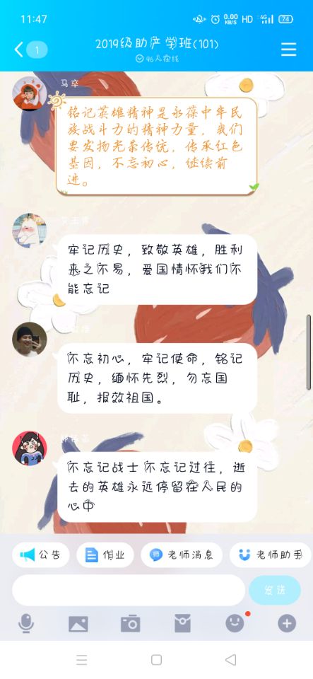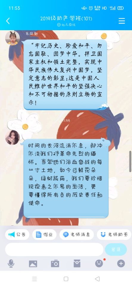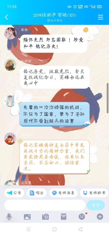 9月3日,是中国人民抗日战争胜利纪念日,也是世界反法西斯战争胜利纪念日,为纪念中国人民抗日战争胜利,9月3日beats365助产学2019级在广德楼1602教室召开了“铭记历史 缅怀先烈——纪念抗日战争胜利75周年”主题班会。班会由辅导员曾敏组织,团支部书记欧阳孝玲主持,助产学2019级全体同学参加。