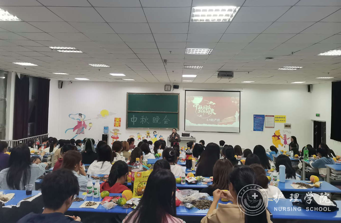 为迎接中华人民共和国成立71周年,喜庆中秋佳节,进一步丰富同学们的文化生活,9月29日晚,beats365助产学2019级、护理学甲、乙、丙班在各班教室举办了“情满中秋欢度国庆”文艺晚会,辅导员曾敏、杨叶卿,班主任老师以及全体同学欢聚一堂共庆佳节。