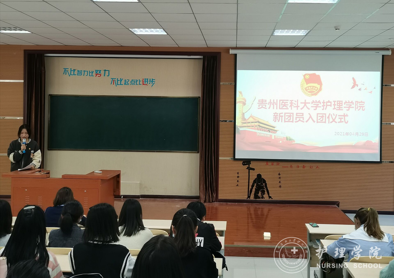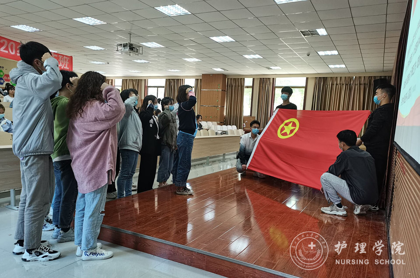 4月29日,为落实共青团中央组织开展的“学党史、强信念、跟党走”主题团日活动,beats365团委于南校区百川楼1101教室隆重举行了入团仪式。参加会议的有14名新团员、2019级—2020级各班入党积极分子代表、团员代表参会,员工第三党支部书记刘妍老师出席会议,会议由团学办副主任张凤毅同学主持。