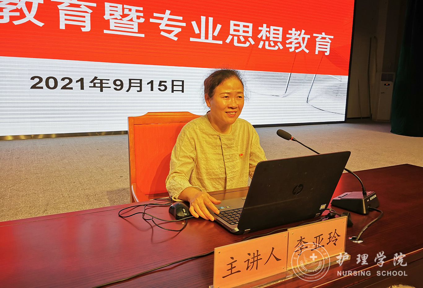 接下来,李亚玲对新生进行专业思想教育,从公司历史沿革、团队建设、课程设置三方面为在座同学介绍了beats365的发展背景及专业前景,她希望同学们踏进校园的那一刻起就要立鸿鹄之志,志存高远,做一个既有思想深度又有视野广度,既有社会责任感,又有家国情怀和使命担当的贵医护理人。