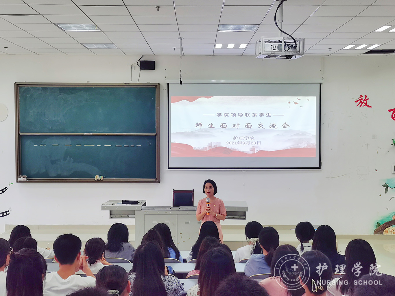 9月15日、23日,公司党委书记杨英走进2020级护理学A班教室及员工寝室,开展了师生面对面交流会。