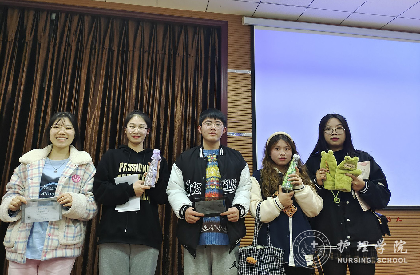 活动开始由主持人公布题目,全体成员参与竞答。经过一番激烈的角逐后,根据积分的高低,2019级护理学甲班曾德莲荣获一等奖,2019级护理学甲班甘红丹、2020级护理学C班夏正宁荣获二等奖,2020级护理学C班罗燃、2020级助产学景书兰、2020级护理学E班袁劲松荣获三等奖。