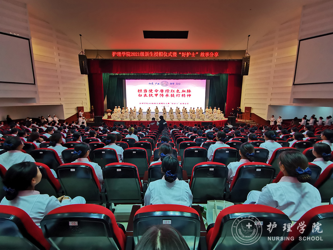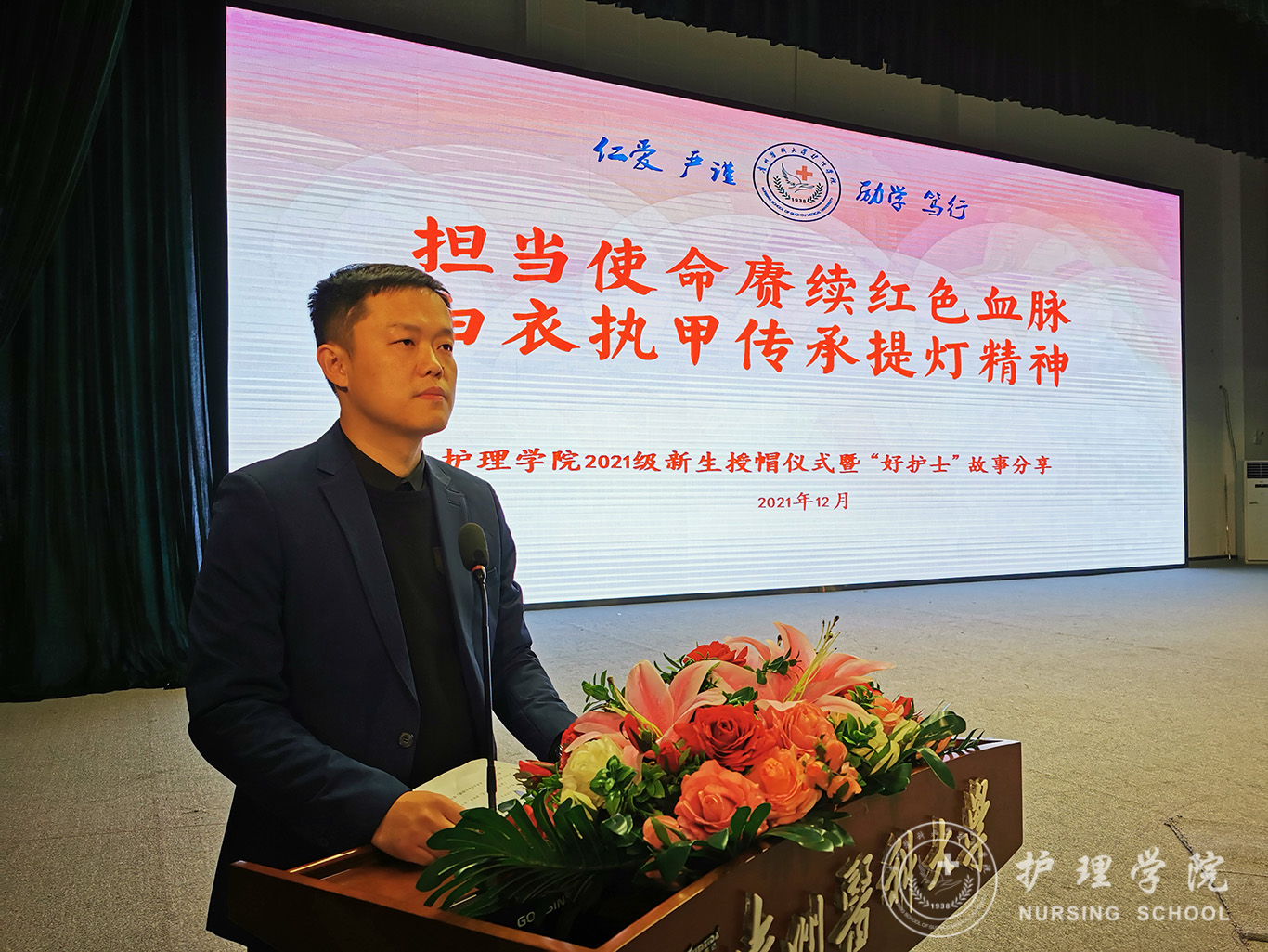 12月8日,为纪念“一二·九”运动86周年,传承和弘扬护理事业的光荣传统,激励新生增强使命感、责任感和归属感,在新时代新征程中勤奋学习,奋勇争先,beats365在南校区大礼堂举行了以“担当使命赓续红色血脉、白衣执甲传承提灯精神”为主题的2021级新生授帽仪式暨“好护士”故事分享活动,由28位优秀护理前辈为724名护理新生授帽传烛。活动由公司党委副书记兼纪委书记何为主持。