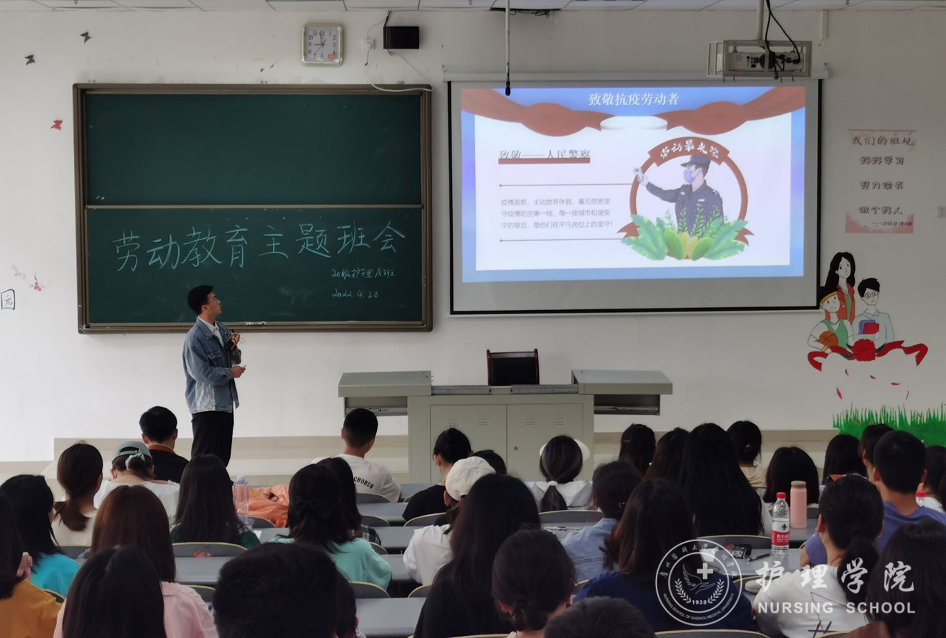 班会上,辅导员带领班级同学从“劳动”这一主题出发,通过学习劳动的类别、劳动的意义、劳动的价值等方面内容,提升同学们对劳动教育的认知。紧接着,各班通过观看“劳动模范”先进事迹,引导同学们主动承担班级劳动任务,在劳动过程中体会劳动的意义,体会劳动带来的乐趣,争做热爱劳动的新时代青年。