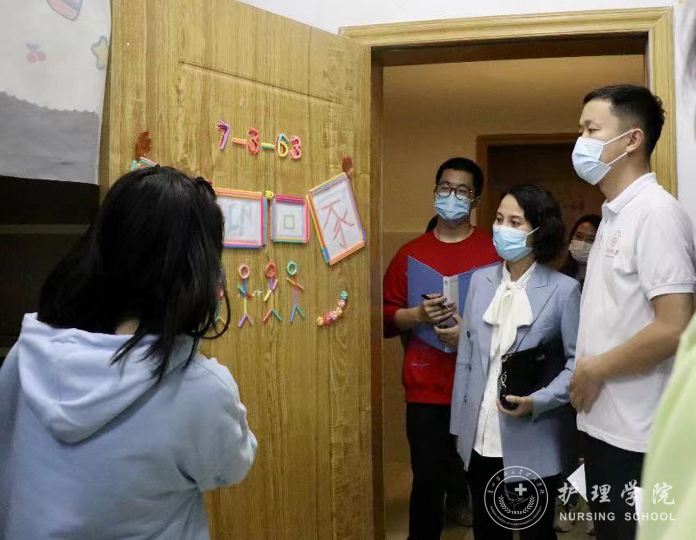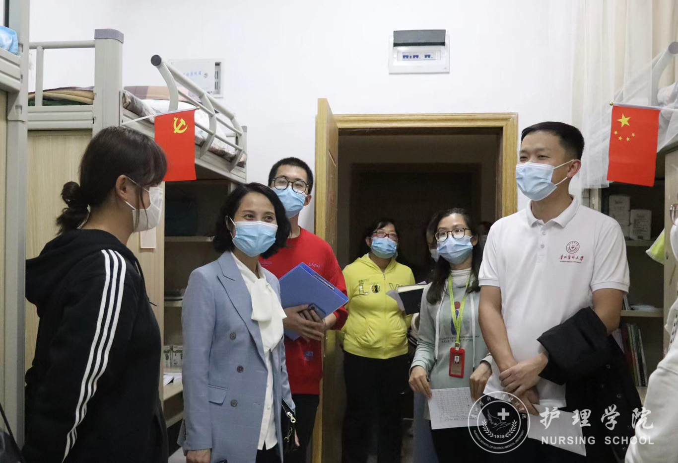 同时,领导、老师们也走进2021级员工寝室进行安全隐患排查,详细询问了同学们关于线上学习、日常生活等方面的情况,并叮嘱同学们要注意公共卫生和个人卫生,加强身体锻炼,做好个人防护,合理安排学习和生活。