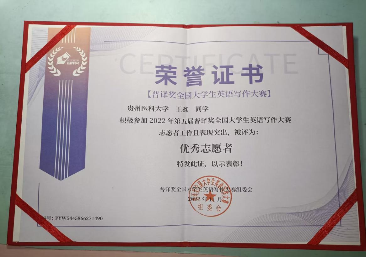 担任2022年第五届普译奖全国老员工英语写作大赛负责人,并在志愿服务工作中表现突出,荣获“优秀志愿者”称号: