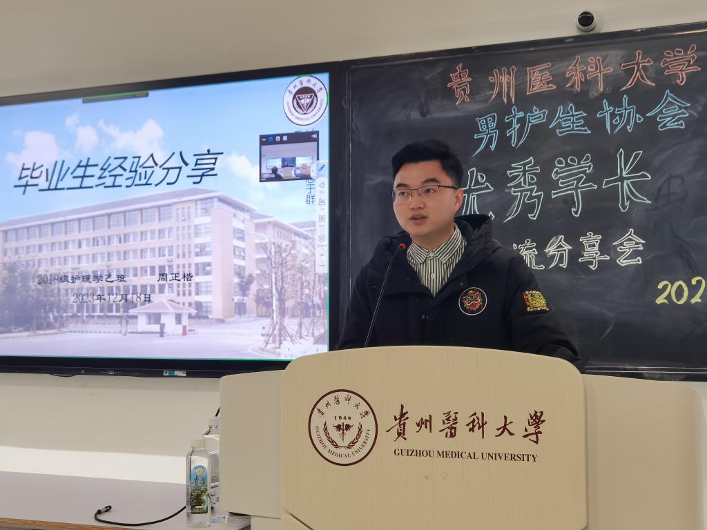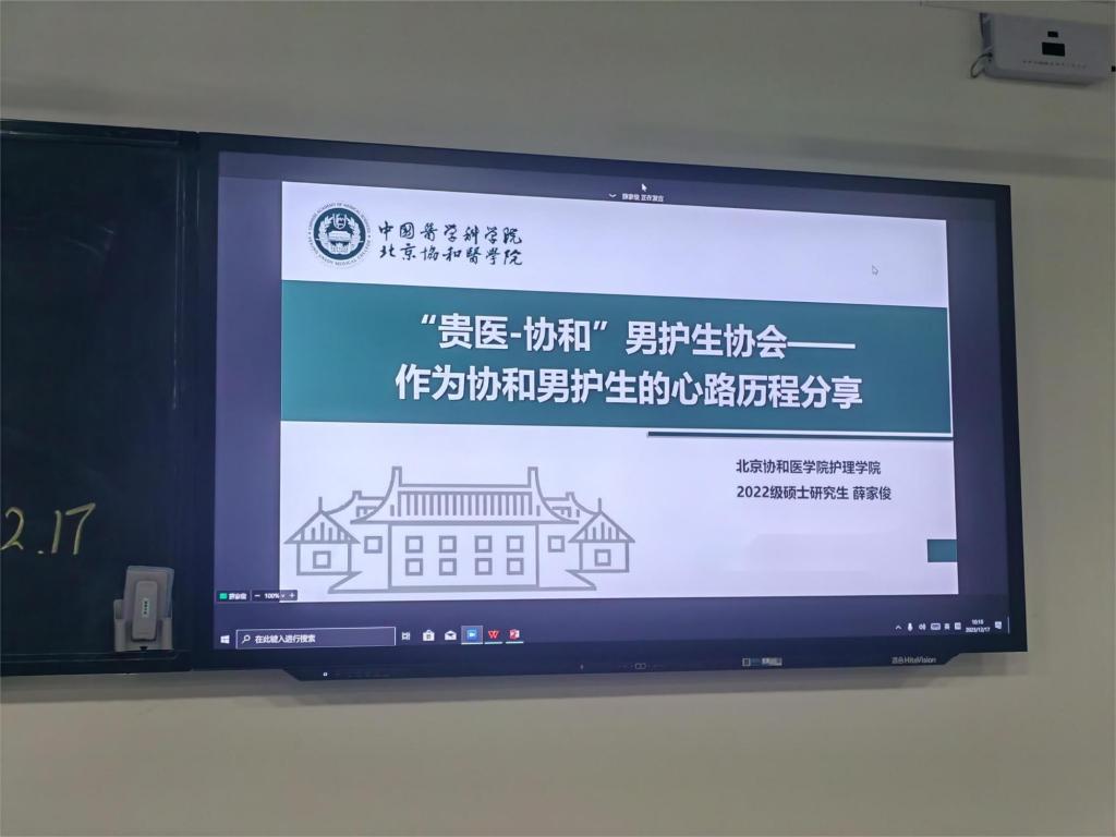 12月17日,为充分发挥优秀学长的榜样引领作用,进一步稳定男护生的专业思想,帮助树立正确的职业观、就业观和择业观,beats365官网亚洲网页版男护生协会在云漫湖校区基础组团R204、R207教室开展了优秀学长经验交流分享会。会议采取线上和线下同步形式开展,男护生协会指导老师、公司党委委员、副经理王秀红、公司团委副书记王晓玲、员工第二党支部书记刘文壮及辅导员袁明老师出席本次会议。北京协和医公司beats3652022级研究生薛家俊、beats3652019届毕业生周正楷受邀分别于线上线下进行了经验交流分享,公司2022级、2023级400余名男护生参加了分享会。会议由2023级男护生代表付知行主持。